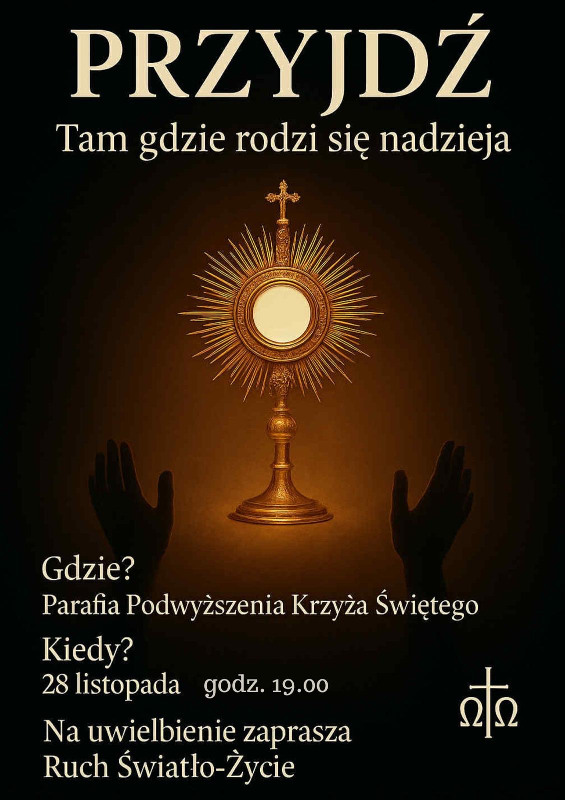 Nasza wspaniała młodzież z Ruchu Światło-Życie serdecznie zaprasza na wyjątkowe spotkanie z Panem Jezusem. Jest to okazja do wspólnej modlitwy, dziękczynienia i doświadczenia Bożej miłości. Niech to będzie radosny czas wspólnoty, w którym będziemy dziękować Panu Bogu za wszelkie łaski, a także prosić o potrzebne siły potrzebne do pokonywania trudności życiowych. W czasie modlitwy uwielbienia i dziękczynienia dokonuje się wiele cudów, uzdrowienia, uwolnienia oraz nawrócenia. Nie wtedy kiedy prosimy, ale wtedy kiedy Go uwielbiamy i dziękujemy. Modlitwa uwielbienia zmienia ludzkie serca, pozwala doświadczyć żywego Jezusa, nasze serce otwiera się na działanie Boga, przestajemy użalać się nad sobą, ale skupiamy się na Bogu. Pan Bóg pragnie abyśmy Go uwielbiali. Uwielbiać, to zgadzać się na swoje życie, doświadczać bezwarunkowej miłości Boga, to widzieć siebie jako dziecko kochającego Ojca, to mówić Bogu, że jest ważniejszy od pieniędzy, zdrowia, powodzenia czy kariery. Uwielbienie to modlitwa, która najbardziej podoba się Panu Bogu. Uwielbiajmy i kochajmy Go. On zasługuje na naszą miłość!